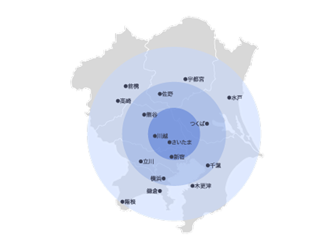 - 埼玉県を中心とした1都6県とその周辺エリア
