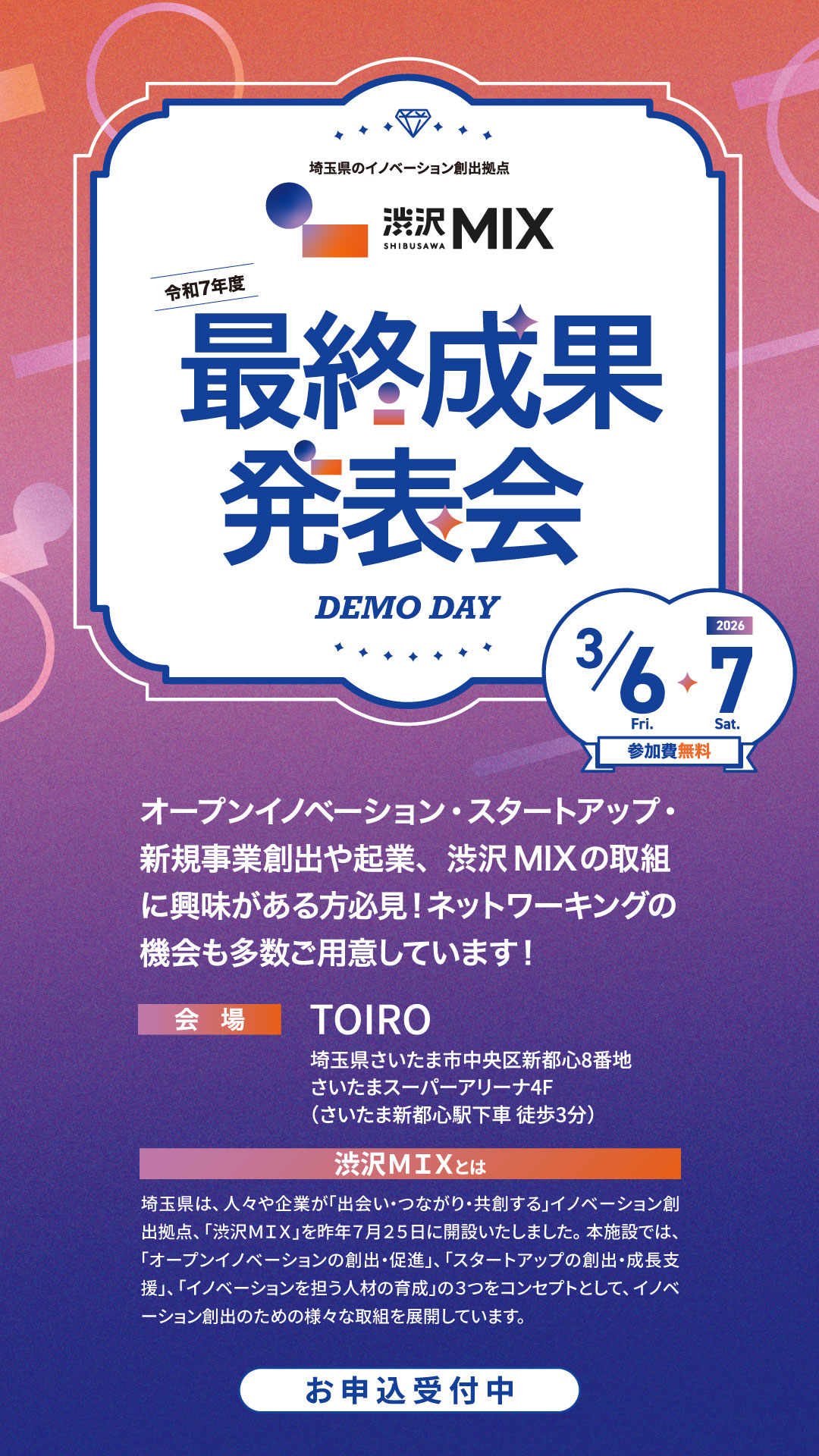 埼玉県のイノベーション創出拠点「渋沢MIX」が主催する